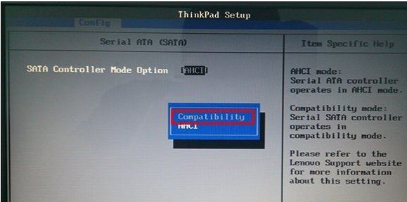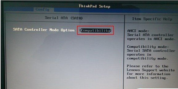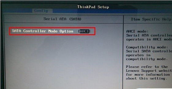 3、在打开的Serial ATA (SATA)界面中,选择sata controller mode option 【AHCI】选项。