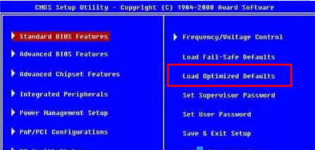 2、在打开的BIOS窗口中,选择并进入“Load Optimized Default”选项。