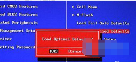 3、进入“Load Optimized Default”选项之后,在弹出页面中选“ok”,重启电脑即可恢复主板的出厂设置。