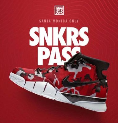 突袭发售,SNKRS发布发售信息后,需要在鞋款的页面中找到CAM的跳转图片,启动手机自带的相机,扫描指定的图片才能解锁入手权。