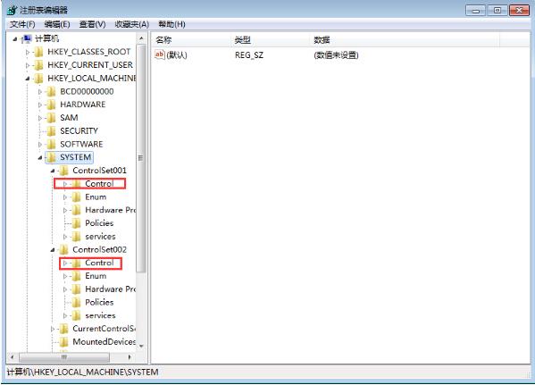 HKEY_LOCAL_MACHINESYSTEMControlSet002Control和HKEY_LOCAL_MACHINESYSTEMControlSet001Control。