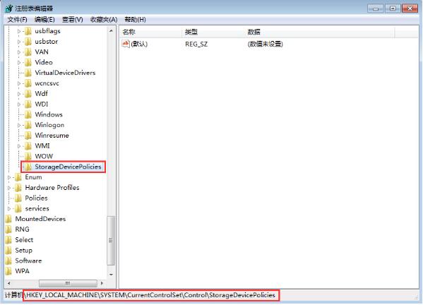 3、接着展开HKEY_LOCAL_MACHINESYSTEMCurrentControlSetControlStorageDevicePolicies