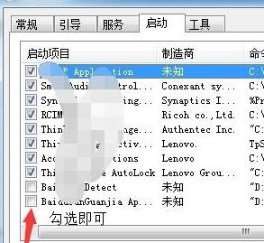 然后选择“启动”页,找到“ctfmon”并在其前面打上钩,按“应用”、“确定”,重启机器即可生效