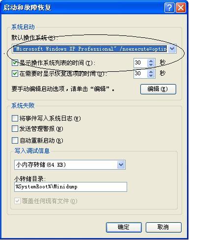 3、在打开的界面中选择启动和故障恢复,设置为Microsoft Windows XPprofessional