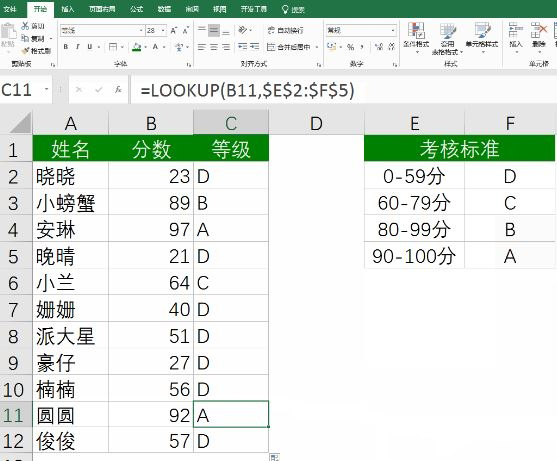 这种方法可以轻松替代IF函数多嵌套问题,前提是先要对查找范围进行升序排序。