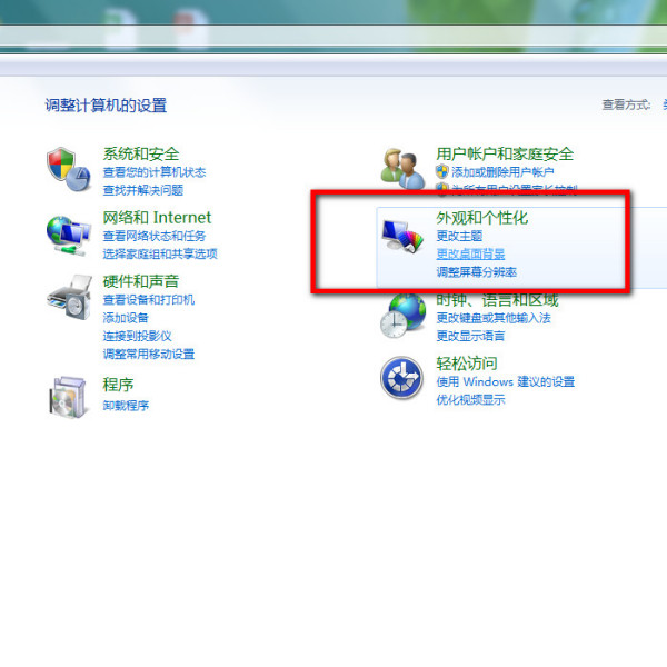 2、进入”控制面板“后,再选择”外观和个性化“进入。