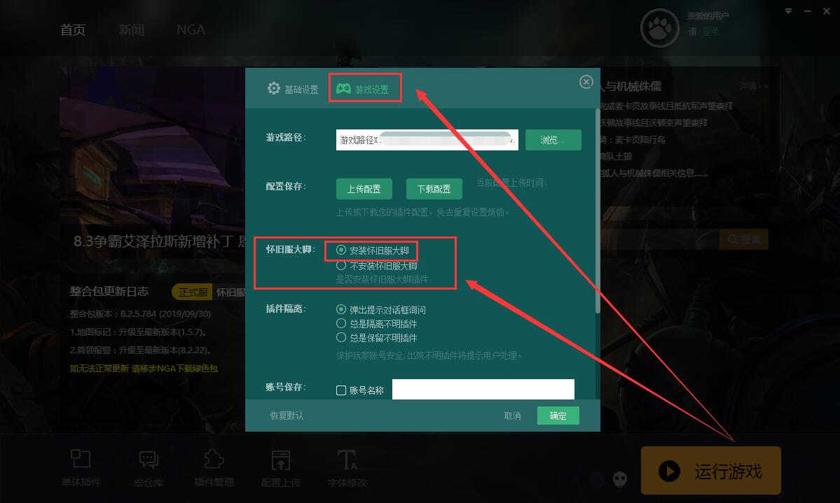 3、然后点击【游戏设置】,在下方能够找到怀旧服大脚,勾选【安装怀旧服大脚】,就行了。