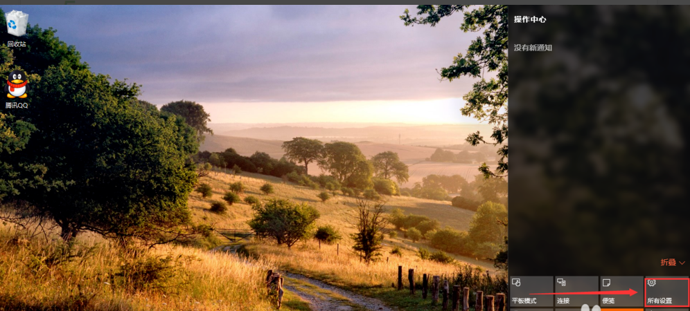 1,打开屏幕下方的“通知”按钮或者通过开始屏幕,进入电脑的设置页面。