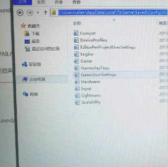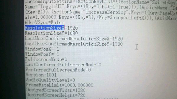 然后找到GameUseSettings找到这一行,可能比较密密麻麻,可以点开查找把下图画蓝色的字输入查找就找到,把这一行和下面一行的等号后边输入显示器的分辨率即可。最后一步进入游戏调成全屏即可;