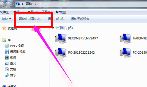 第二步,单击打开在菜单栏的右上角的【网络和共享中】