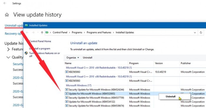 3.现在,您可以选择要卸载的更新,然后单击“卸载”按钮。