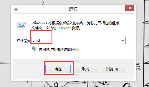 2、在运行窗口中输入命令cmd,回车确定。