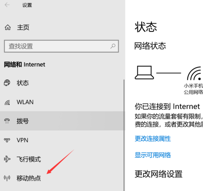 3.在【移动热点】界面中,将【移动热点】打开即可