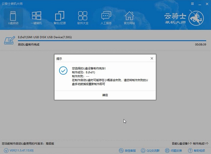 6、制作成功,点选【确定】即可完成并取出U盘了。