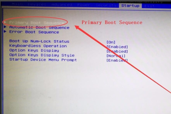 3、选择第一项Primary Boot Sequence选项,在键盘上按下回车键。