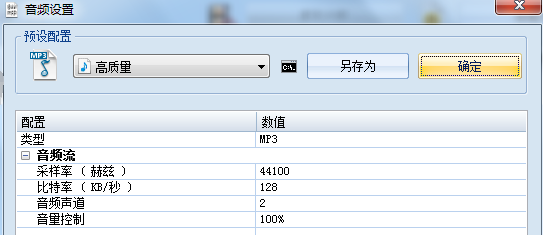 4、我们可以点击输出配置来进行音频质量的设置