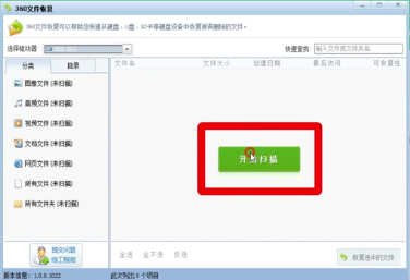 3、点击“开始扫描”,选择丢失的文件