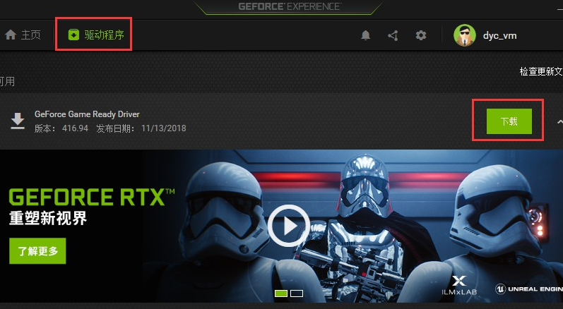 4、登录英伟达账号,点击驱动程序,检测最新显卡驱动,下载并更新驱动到最新;