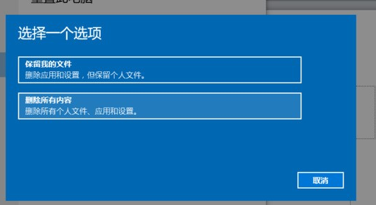 (2)删除所有内容(整个硬盘都会被删,然后自动重装win10)。