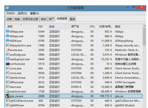 3.点击详细信息 选择侠盗飞车进程gta-sa.exe右键-设置相关性。