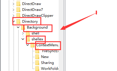 2、打开以下注册表 HKEY_CLASSES_ROOT/Directory/Background/shellex/ContextMenuHandlers