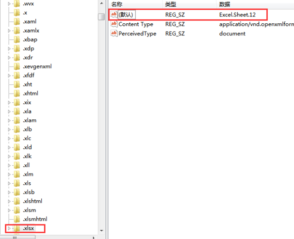 5、双击(默认)一项,并将(默认)改为Excel.Sheet.12;。