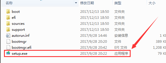 1、使用解压工具把win10原版镜像文件解压到C盘之外的分区,比如D盘。然后打开文件夹点击setup.exe