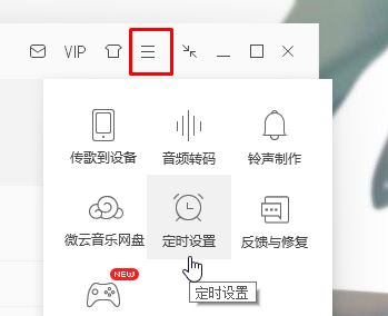 1、使用QQ音乐,打来QQ音乐,点击【主菜单】--【定时设置】,如图: