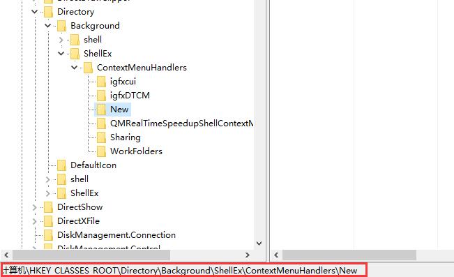 2.然后依次展开注册表文件夹:【HKEY_CLASSES_ROOTDirectoryBackgroundshellexContextMenuHandlers】。