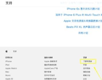 4、在技术支持页面下拉到底部,点击下载或更新,如图:
