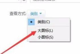 2、在打开的控制面板窗口中,点击右上角的“查看方式”下拉菜单,在弹出菜单中选择“大图标”菜单项,如图: