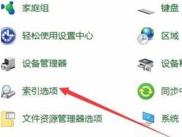 3、这时可以打开“所有控制面板项”窗口,点击窗口中的“索引选项”图标,如图所示: