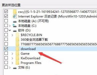 5、这时会打开更改索引位置的窗口,选择我们要添加到索引中的文件夹,最后点击确定按钮,如图: