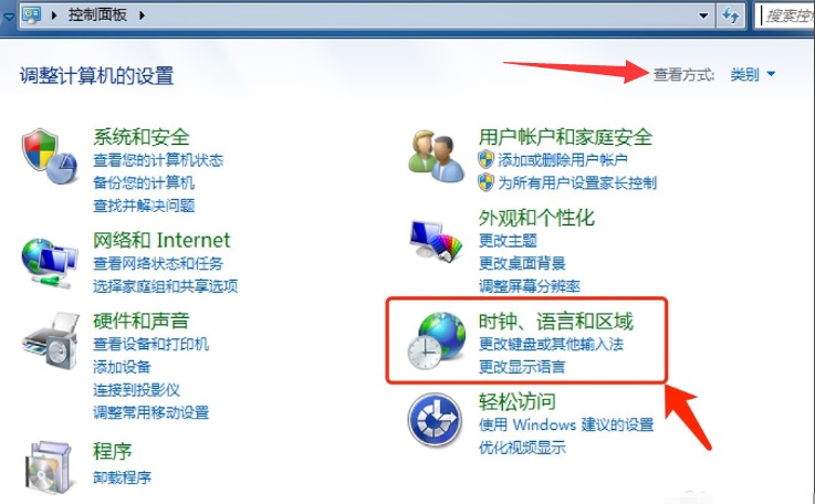 2、将“查看方式”改为“类别”,选择“时钟,语言和区域”