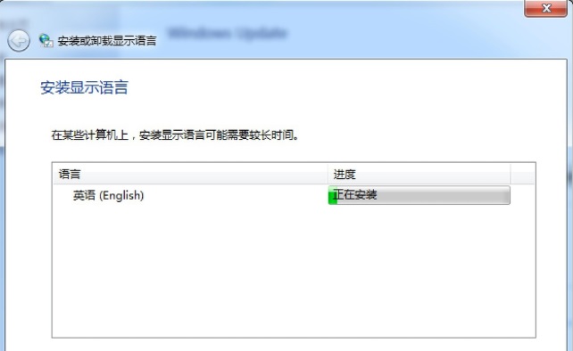 9、稍等片刻,安装更新完成,现在就可以将Win7变成其它语言版啦
