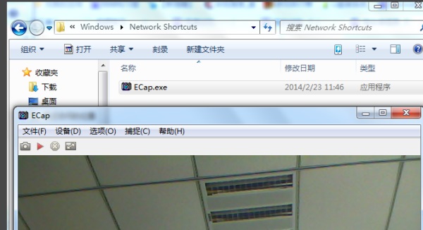 1.进入系统桌面,鼠标双击打开桌面上的计算机图标,在网络位置中我们可以看到有个Ecap.exe程序,这个程序就是摄像头了,双击打开就可以了。