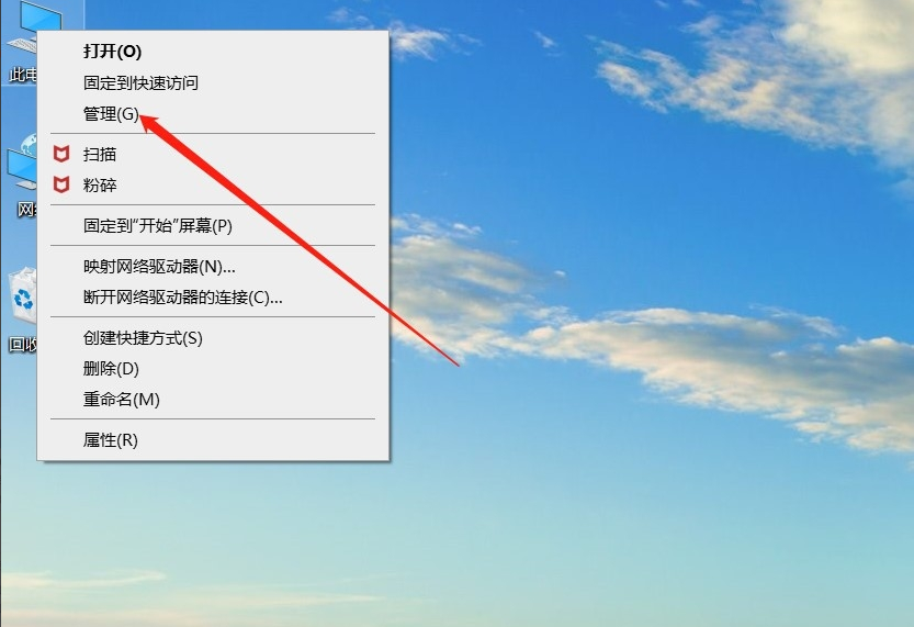 2、右键点击电脑桌面的“此电脑”,然后点击“管理”。