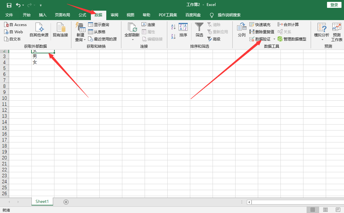 2、选择单元格,点击数据选项,再点击数据验证。