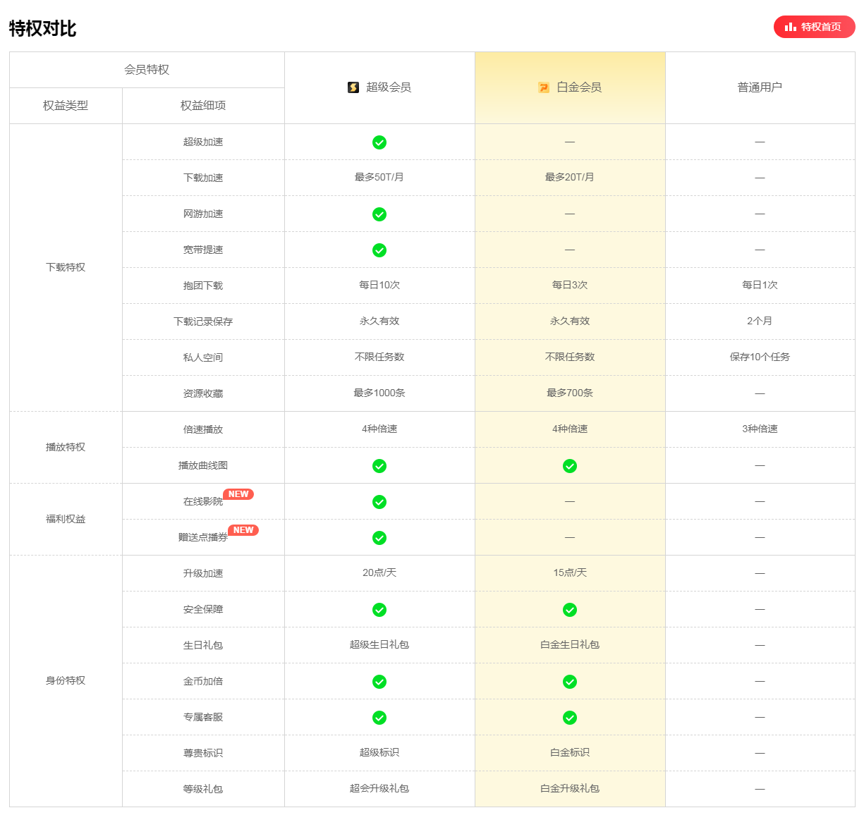 不管是迅雷白金会员,还是迅雷普通会员、迅雷超级会员,都拥有下载加速特权。