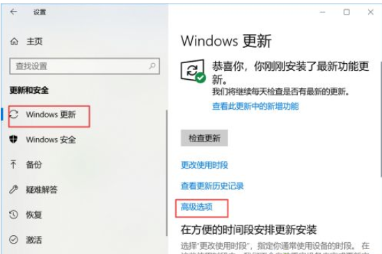 3、弹出的界面,我们Windows更新,然后点击高级选项;