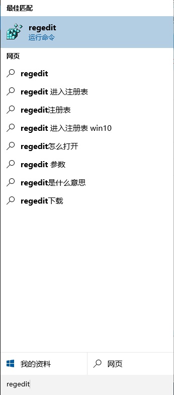 在Cortana搜索栏输入regedit,按回车进入注册表编辑器