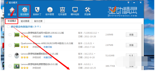 【安装USB驱动】:打开驱动精灵,选择”驱动程序“下的”标准模式“,然后点击安装USB驱动。安装完驱动后重启电脑就好了。