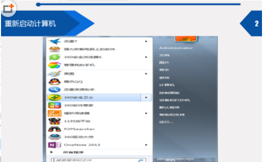 2、重新启动计算机:不要强制重启,笔记本可以用触屏板当鼠标用关机。不行的话按键盘上带windows标志的键(Ctrl 键和Alt键之间),弹出开始菜单。