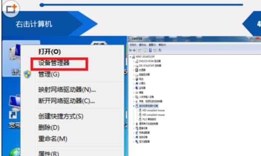 4、右击计算机,点击设备管理器,点击鼠标和其他指针设备。