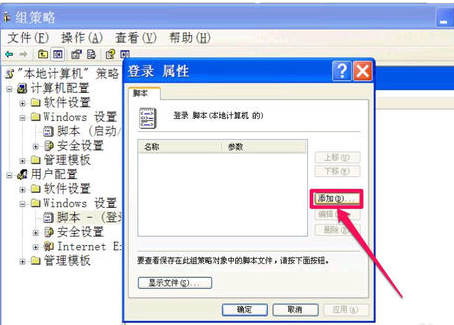 进入登录属性窗口,下面有个列表框,就是用来启动脚本的,里面是空的,按“添加”按钮。