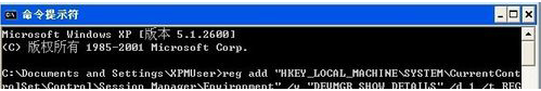 reg add "HKEY_LOCAL_MACHINESYSTEMCurrentControlSetControlSession ManagerEnvironment" /v "DEVMGR_SHOW_DETAILS" /d 1 /t REG_SZ /f