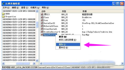 右键点击“UpperFilters”和“LowerFilters”,选择删除即可。