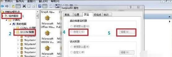 五:找到“netprofm”后右键属性,在新出来的界面导航中选择“安全”,并选中“启动和激活权限”下方的自定义,随后点击旁边的“编辑”按钮,在“添加”中“输入对象名称来选择”选项输入“LOCAL SERVICE”字样,最后按确定即可。