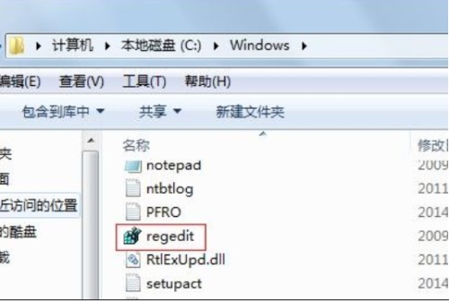方法二:同样也可以在系统C盘里的Windows目录下,找到文件名为regedit.exe运行程序。直接运行该注册表程序即可打开注册表了。