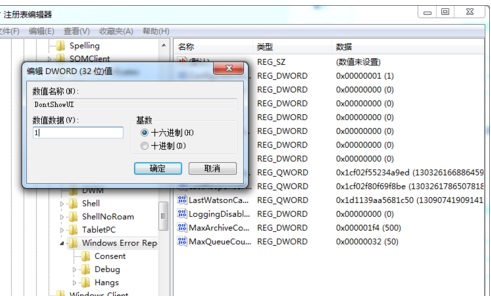 5,在弹出的DontshowUI文件的属性设置窗口,将键值0改为1,然后确定退出窗口。